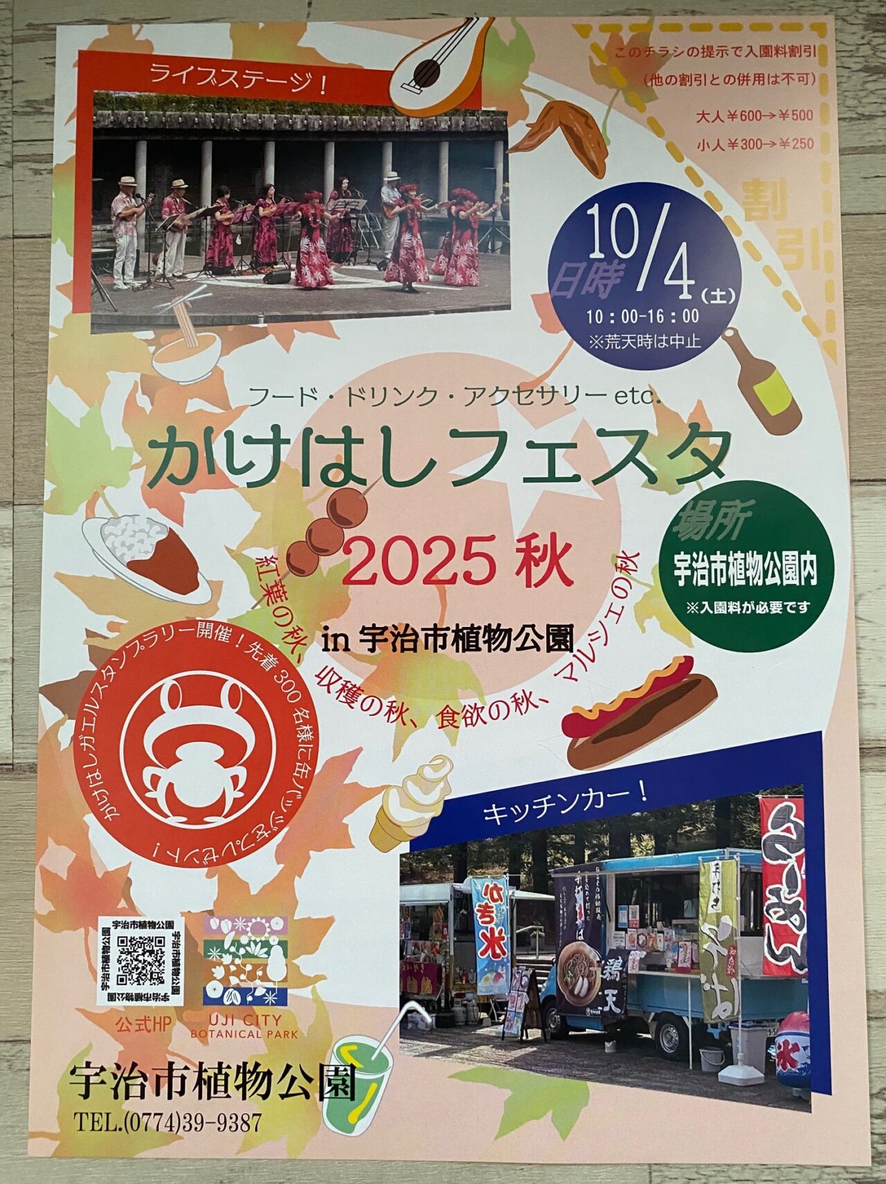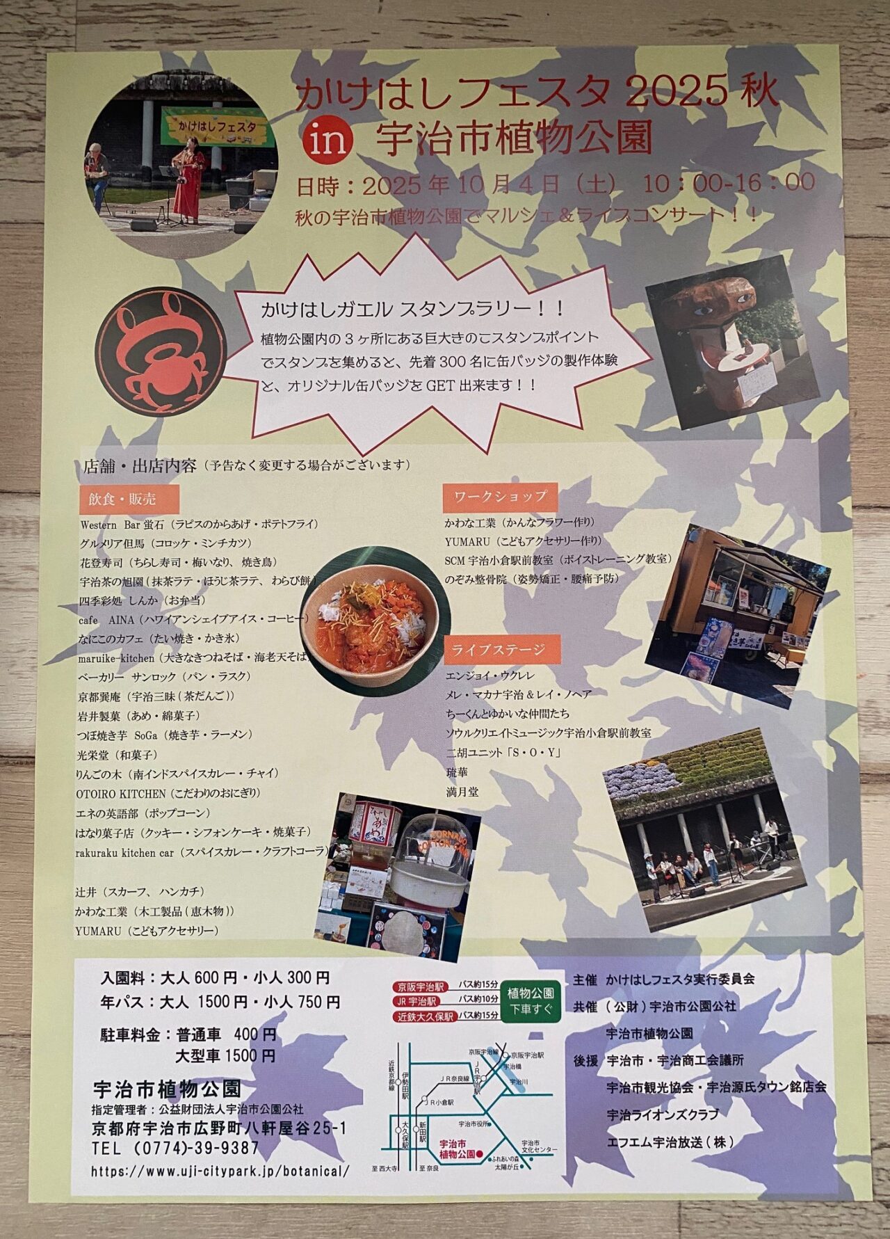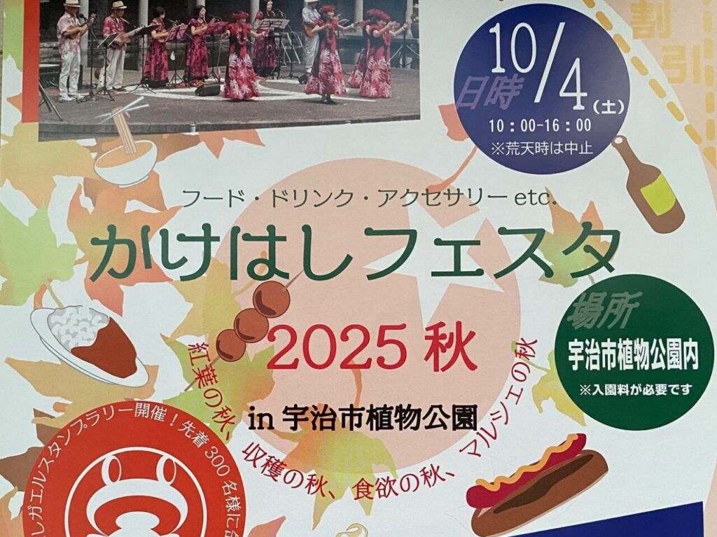 2025年10月4日(土)、宇治市植物公園にて「かけはしフェスタ2025秋」が開かれます。