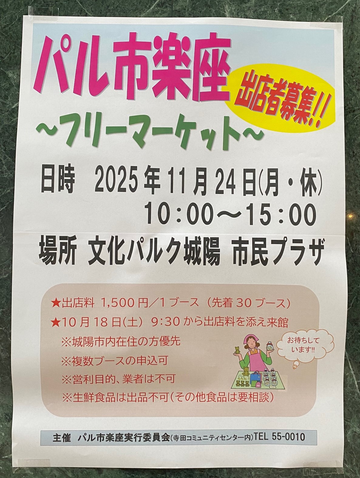 【城陽市】フリーマーケットに出店してみませんか? 11月24日パル市楽座開催!