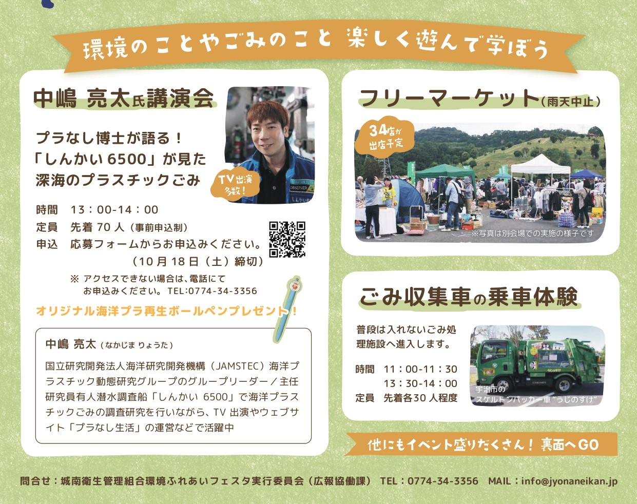 【宇治市】ごみ収集車に乗れる!フリマも講演も楽しめる「環境ふれあいフェスタ2025」開催♪ プラごみ削減を楽しく学ぼう!