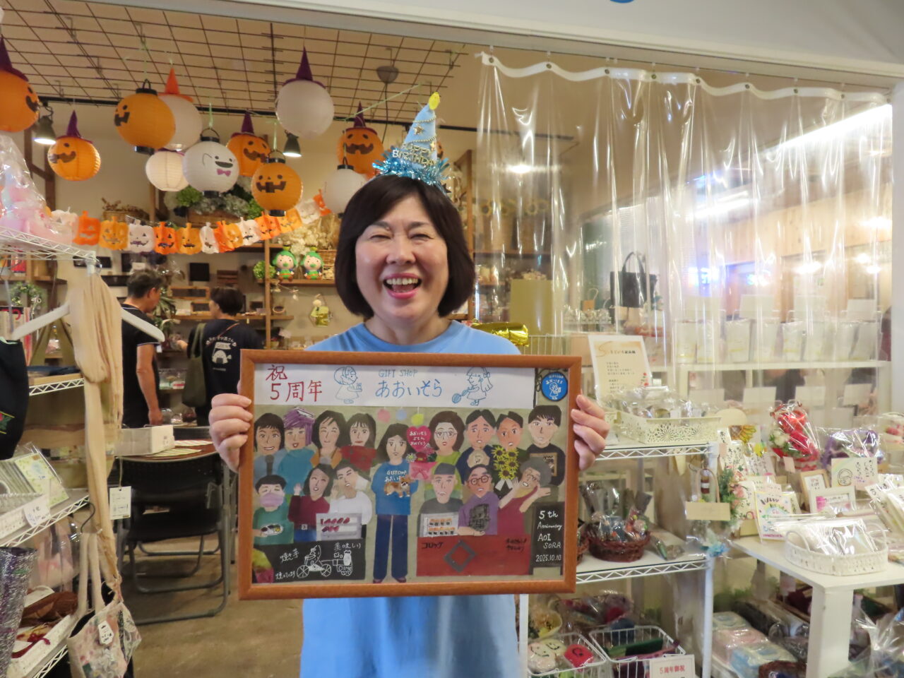 宇治橋通り商店街・大阪屋マーケット内にある「ギフトショップあおいそら」で、2025年10月10日(金)、オープン5周年を記念した感謝イベントが開催されました。