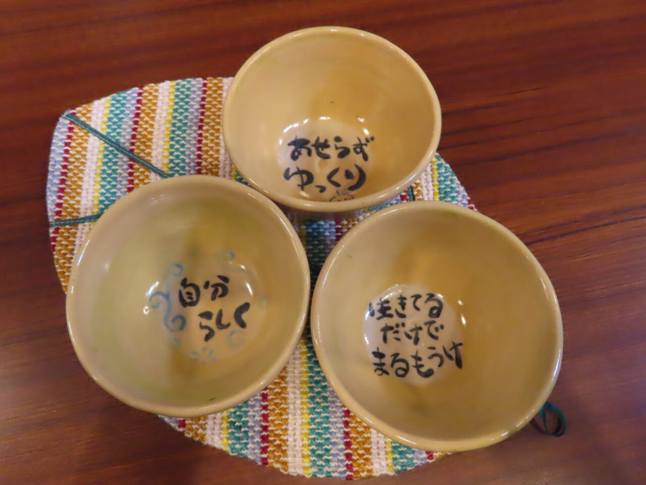 器の底に現れるメッセージに「わぁ、ステキ!うれしい言葉だわ~」と喜ぶ声も。穏やかな時間の中で、参加者同士の交流が自然と生まれていました。