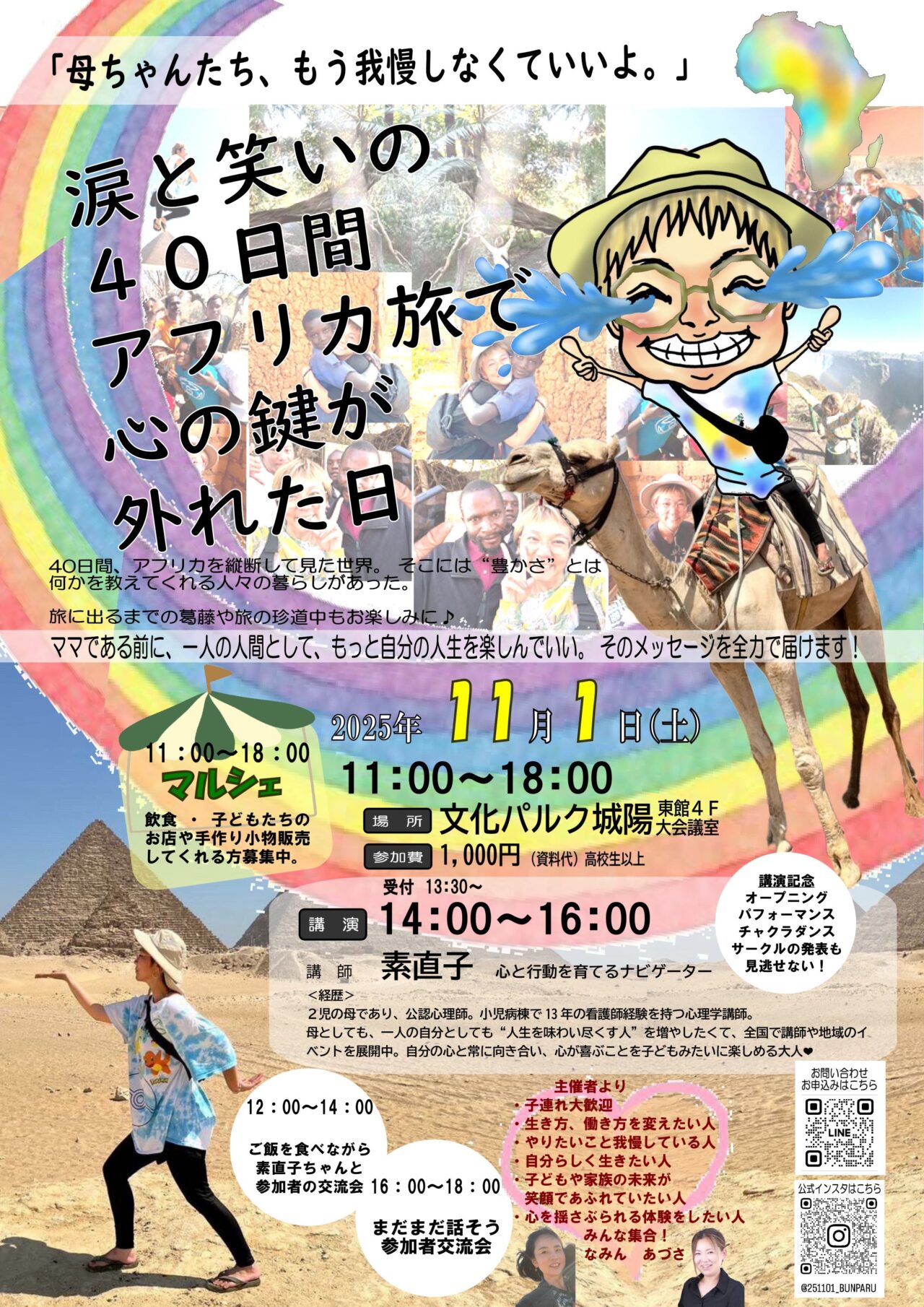 2025年11月1日(土)、文化パルク城陽で 「とびっきりのお話し会&マルシェ」が開催。テーマは「母チャレ!フェス」母ちゃんたちの一歩を、同じママさんたちが応援する、そんなイベントです!