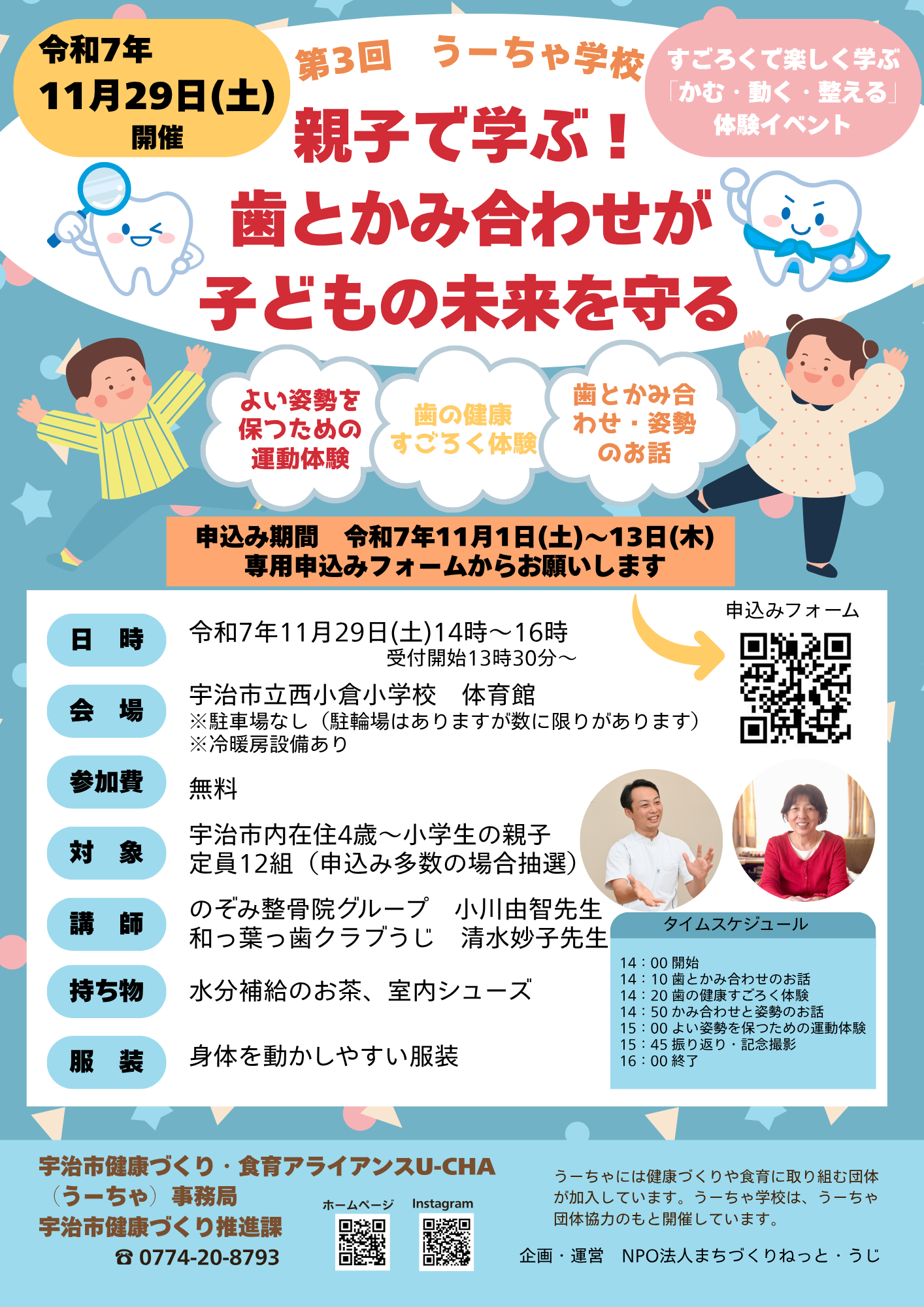 【宇治市】親子でワクワク学ぼう!歯とかみ合わせで未来のカラダを守る体験イベント「うーちゃ学校」申込受付中