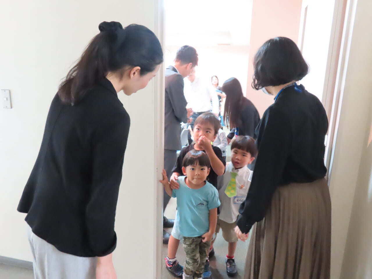 保護者の方々も入ることができず、「どんなところ行ったの?」「何したの?」と、帰ってきたお子さんに興味津々で質問しておられました。