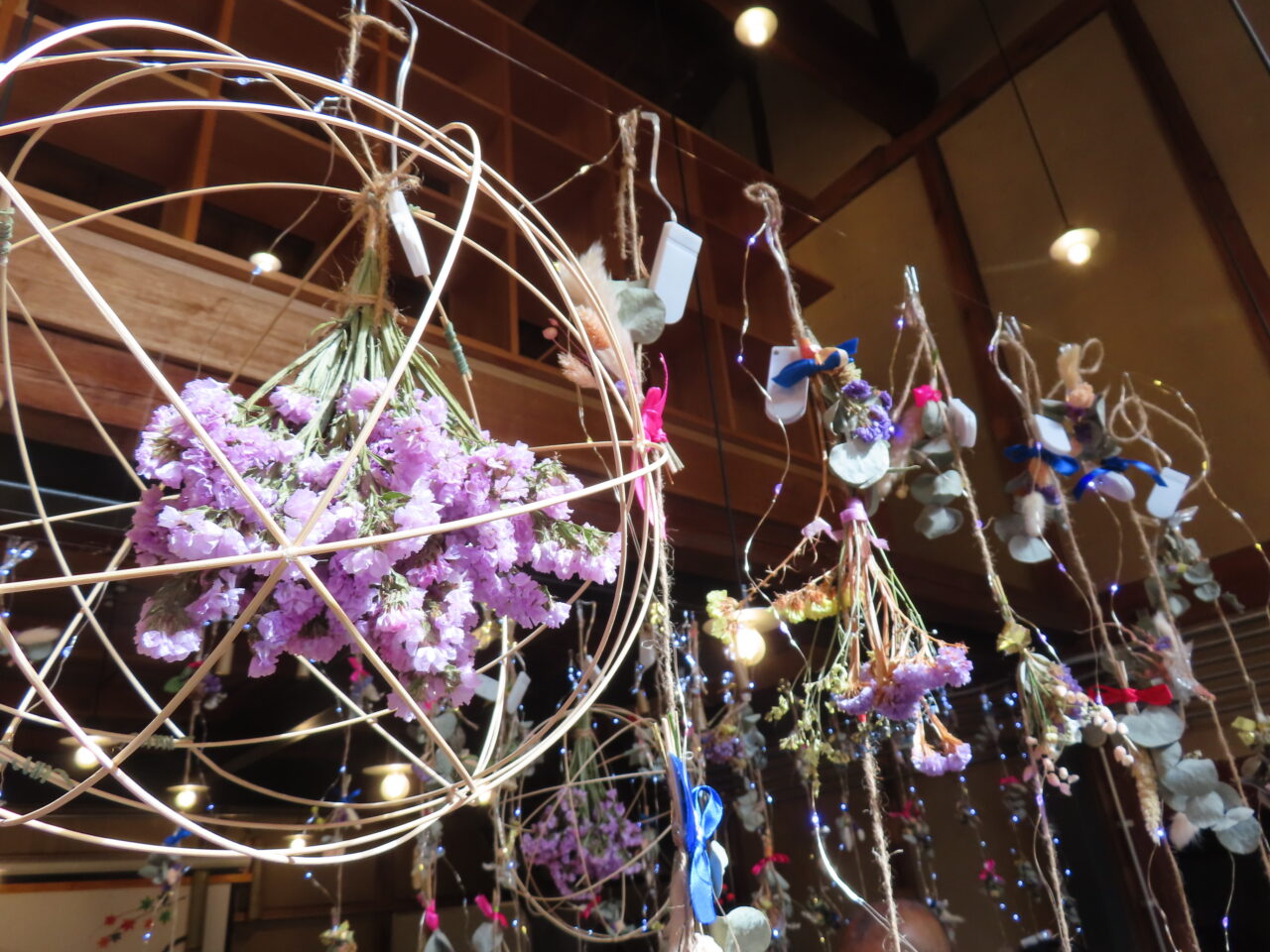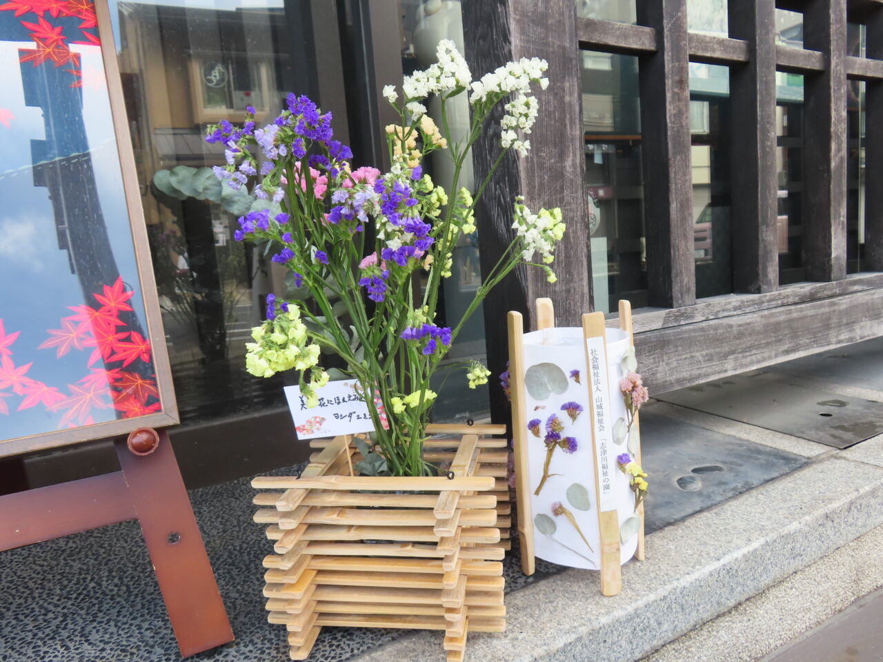 2025年11月1日(土)~3日(月・祝)「いけばな街道2025」が開催されました。宇治橋通り商店街は、スターチスの花を使った生け花や創作作品で美しく彩られ、訪れた人たちの目を楽しませました。