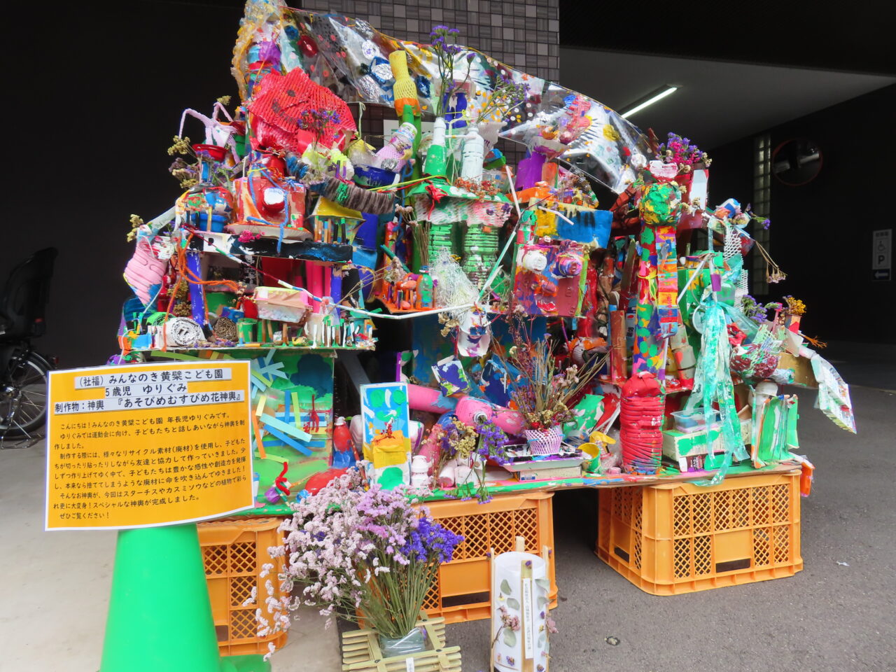 「みんなのき黄檗こども園」や「みんなのき三室戸こども園」の子どもたちが製作したロボットやおみこしも展示され、子どもたちの自由な発想と元気あふれる作品が来場者の笑顔を誘っていました。