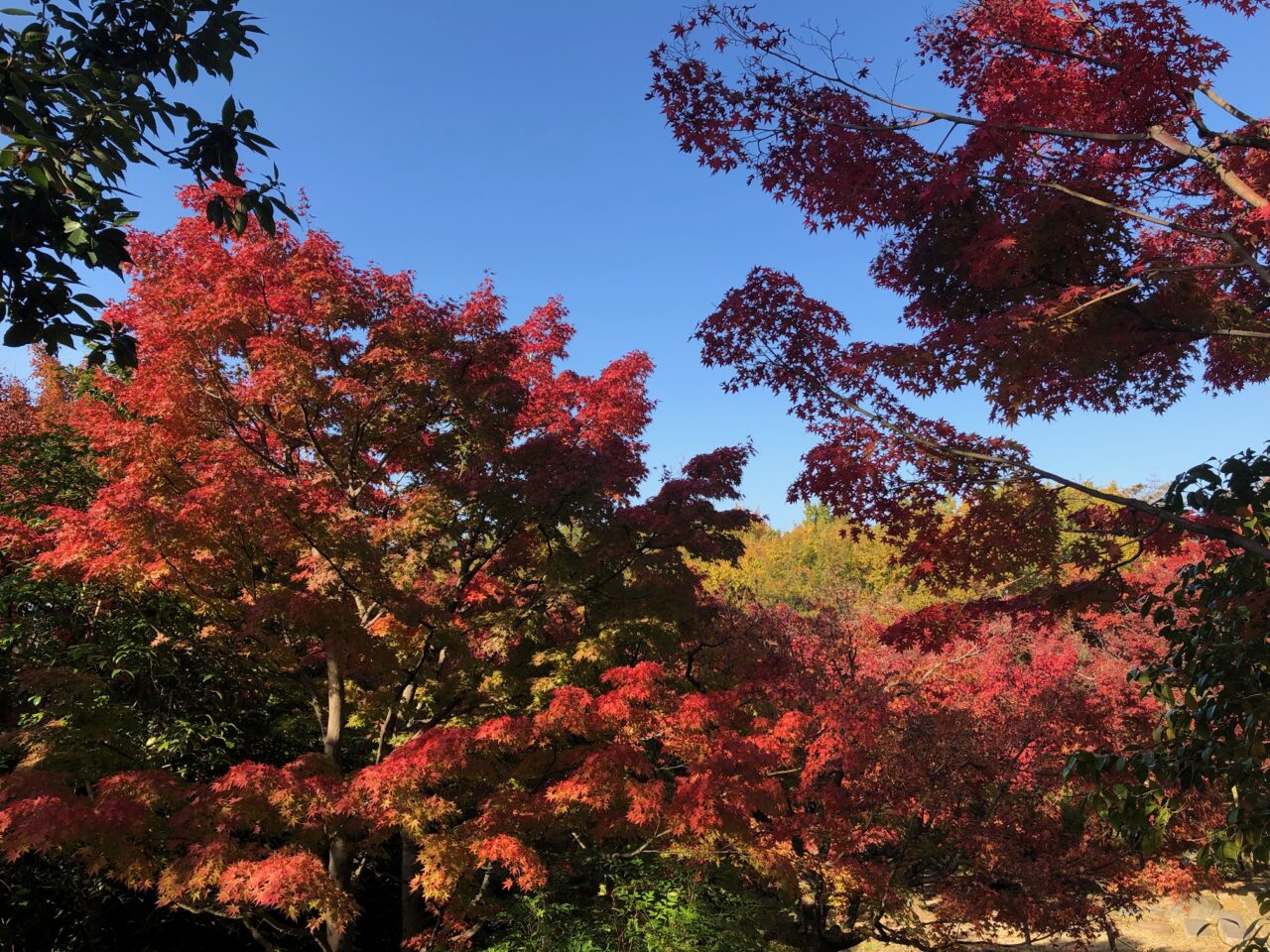 植物公園内には、イロハモミジなどの木々がたくさんあり、この時期は紅葉を楽しむことができます。