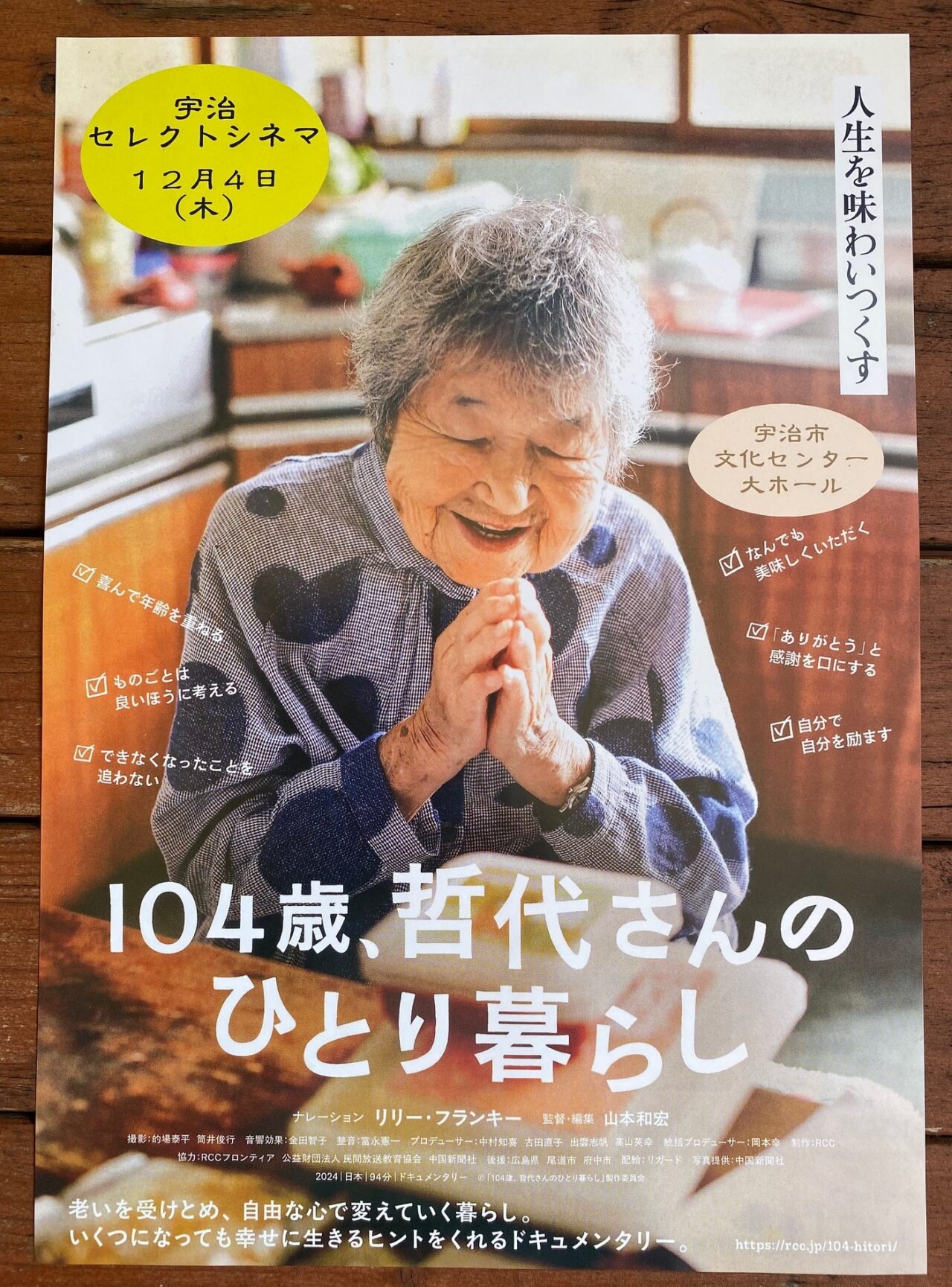 【宇治市】104歳・哲代さんの前向きな暮らしを映画で体感! 「宇治セレクトシネマ」ドキュメンタリー上映会が開催されます