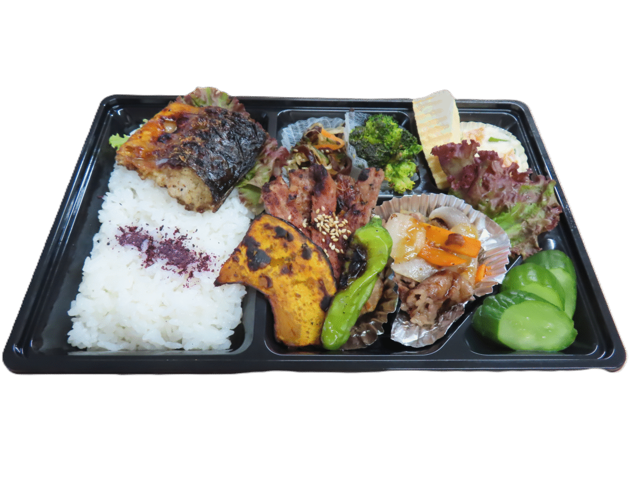 炭火焼きの人気商品に加え、京都文教短期大学の健康レシピ+地元野菜で仕上げた栄養満点弁当!