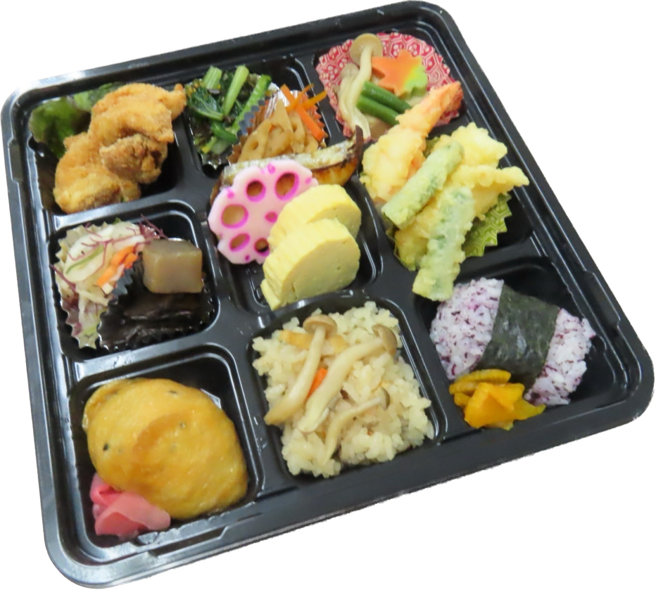 色とりどりのおかずが並ぶ、和の味わいが楽しめるお弁当です。