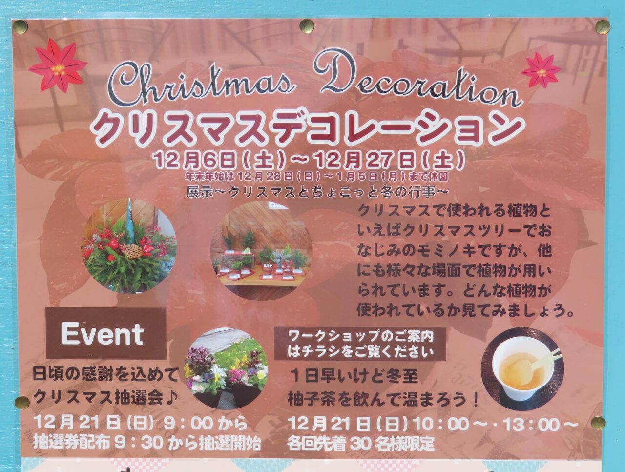 【宇治市】植物公園がクリスマス一色に!「クリスマスデコレーション展」12/6~スタート♪ 抽選会&ゆず茶のふるまいも
