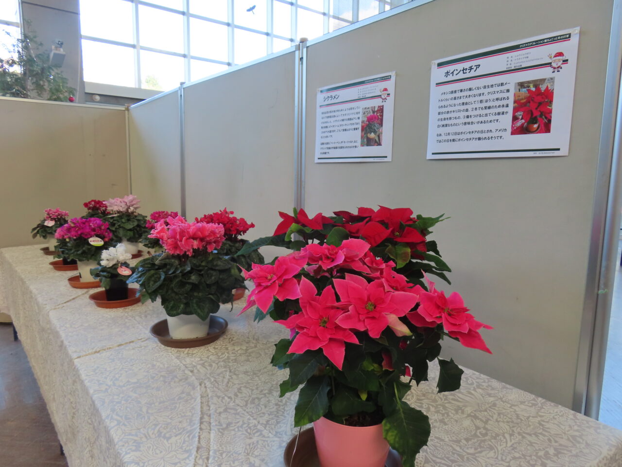 クリスマスの象徴でもあるポインセチアや針葉樹など、季節を彩る植物が展示され、クリスマスとの関わりや歴史をパネルでわかりやすく紹介。