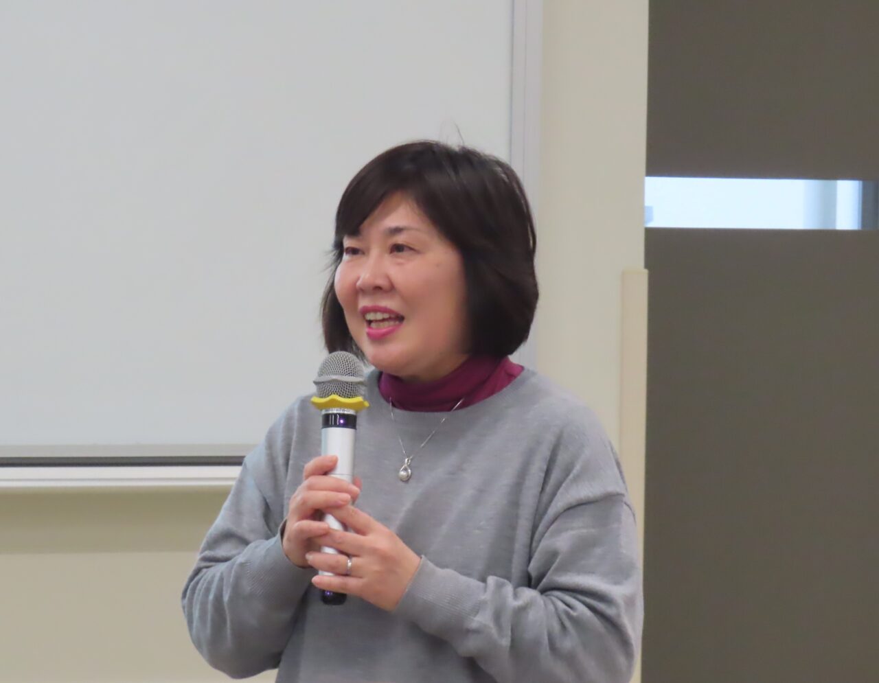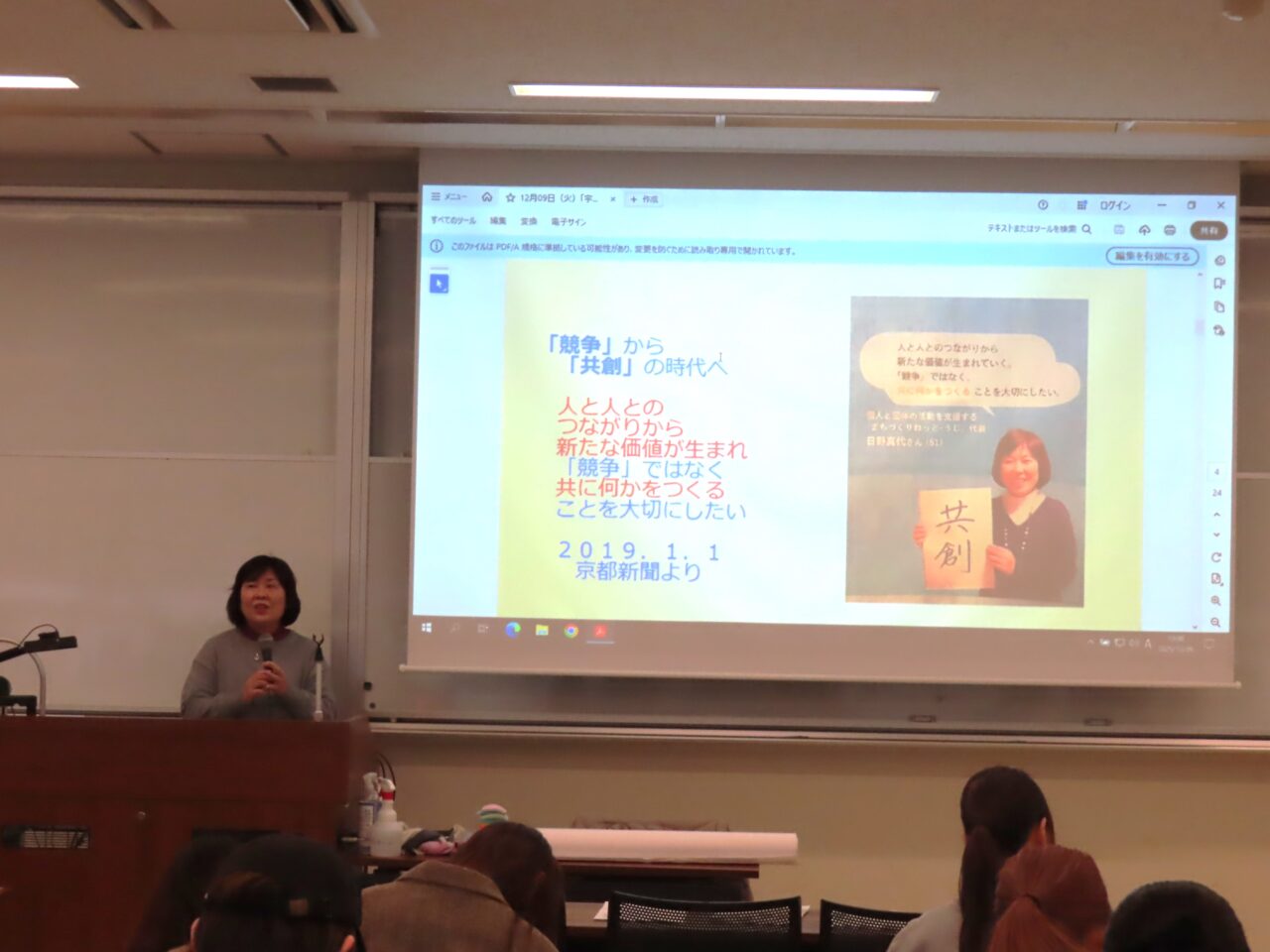 講師を務めたのは、NPO法人まちづくりねっと・うじの代表として地域づくりを牽引する日野真代(ひのまさよ)氏。毎年1回登壇しており、今年も学生たちに“地域と人がつながる意味”を熱く伝えました。