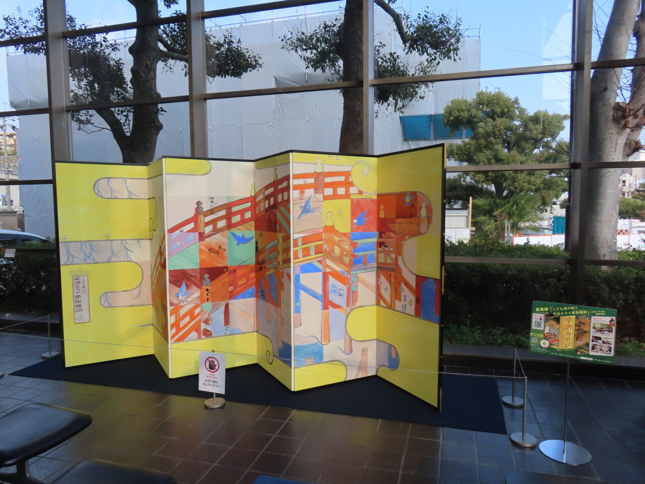 市内の小学生から高校生までの子どもたちが力を合わせて制作した、大きな屏風絵の巡回展示が行われています。