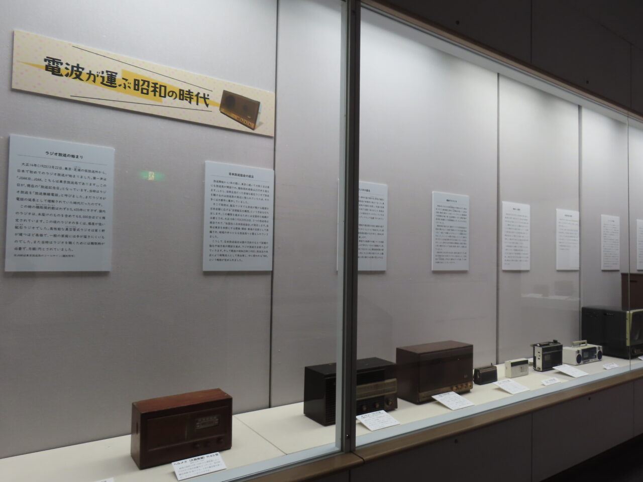会場には、昭和期に実際に使われていたラジオやテレビ、関連資料などが並び、今では当たり前となった映像や音声が、かつては特別な体験だったことを感じさせてくれます。家族が一つのラジオやテレビを囲み、同じ番組を楽しんでいた時代の空気感も伝わってきます。