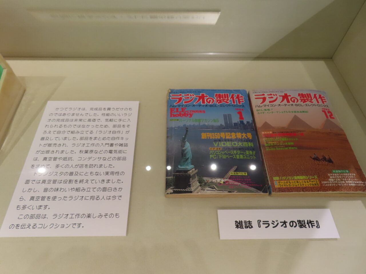 かつてラジオは、完成品が高価で、気軽に手に入れられるものではありませんでした。そのため、部品を集めて自作する「手作りラジオ」が広まり、多くの家庭で親しまれていたそうです。会場では、そうした自作ラジオに関する資料や展示もあり、当時の工夫や時代背景を感じることができます。