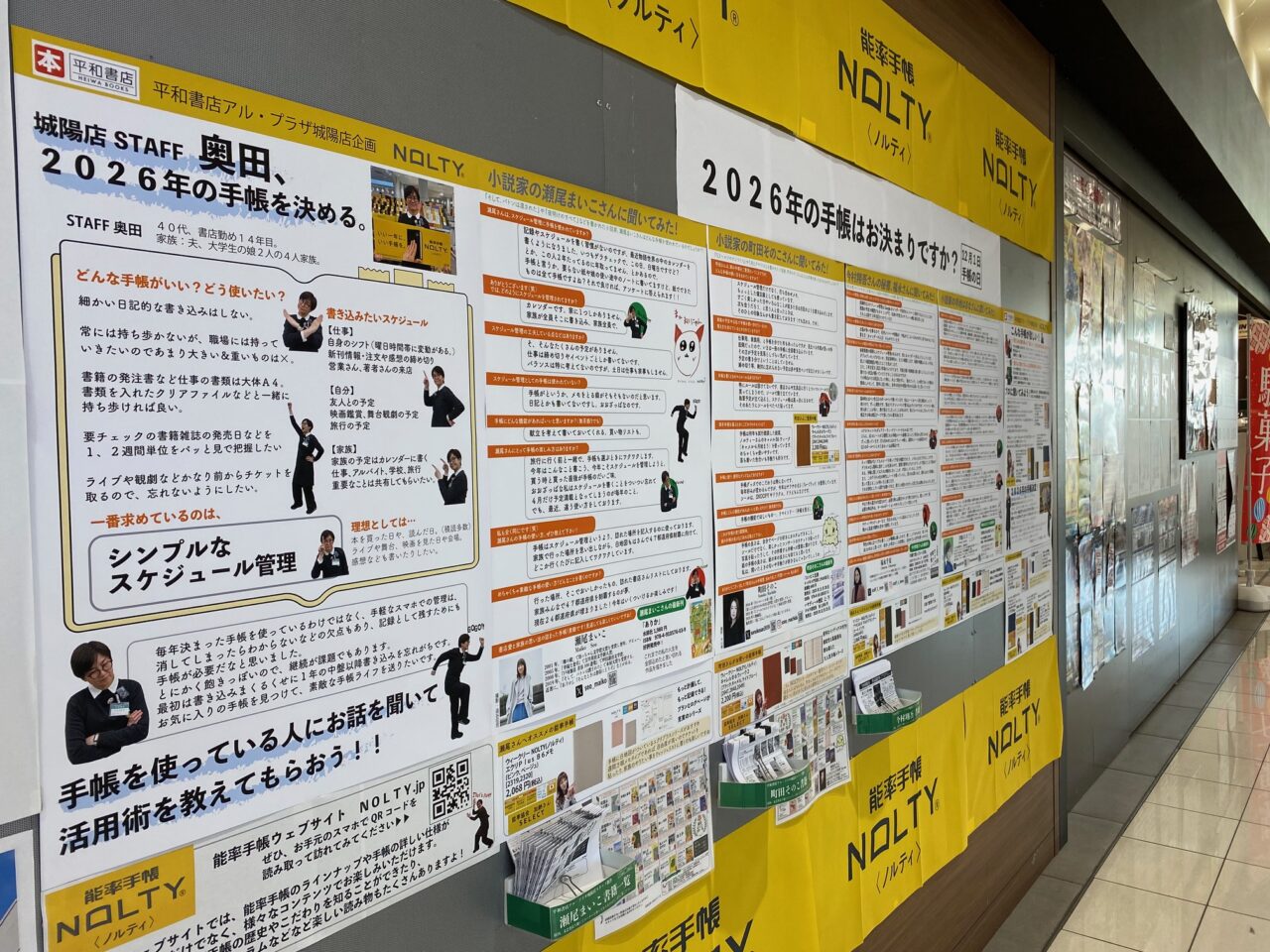 【城陽市】手帳売り場が読み物に?作家インタビューが並ぶ、平和書店城陽店の壁面企画