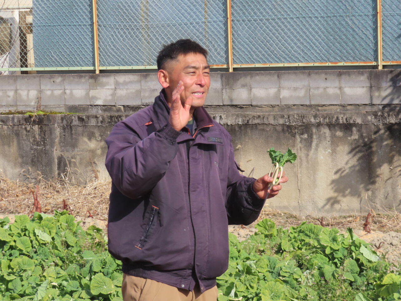 この日の収穫野菜は、小かぶと菜の花(ハナナ)。