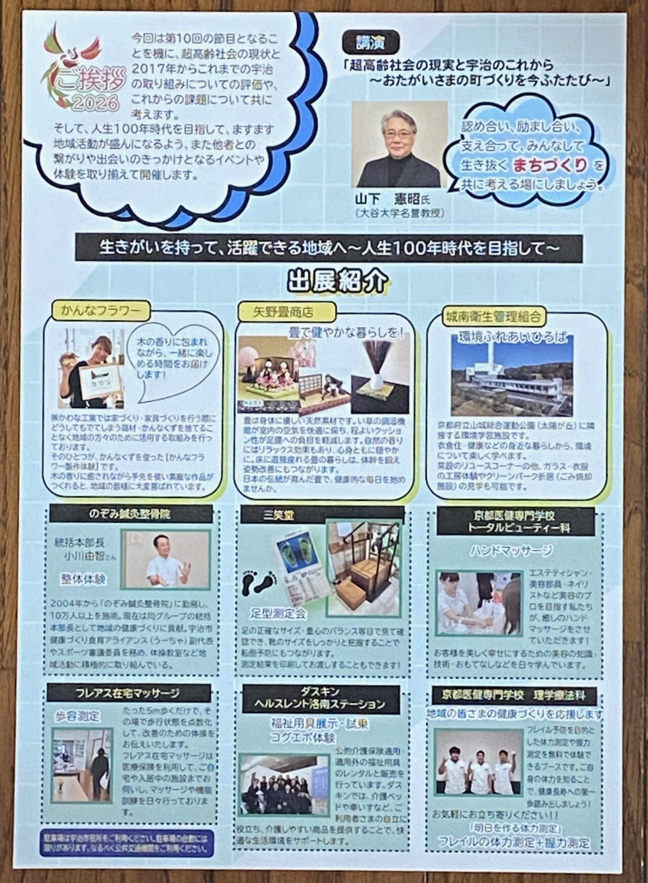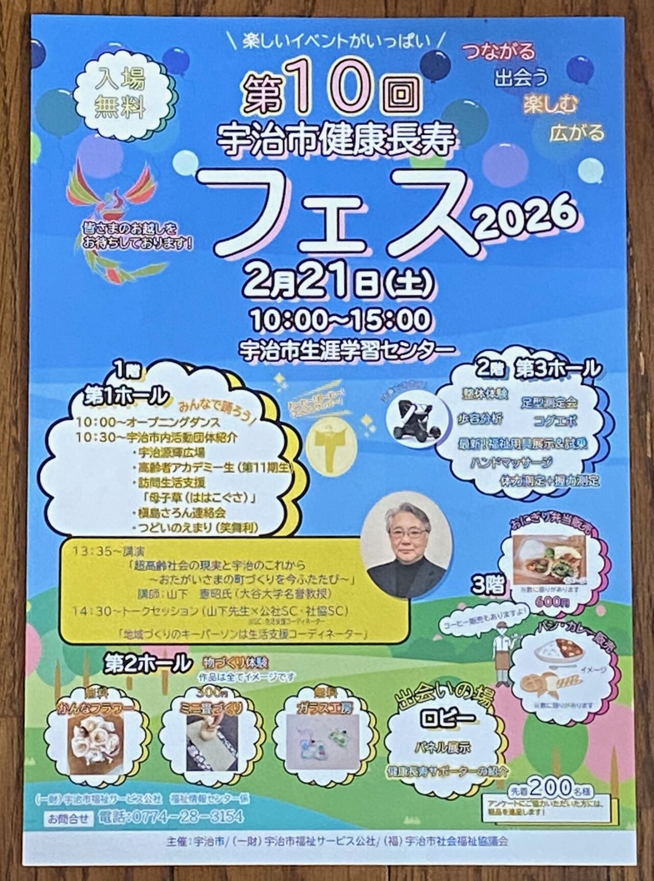 宇治市生涯学習センターにて、「第10回 宇治市健康長寿フェス2026」が開催されます。