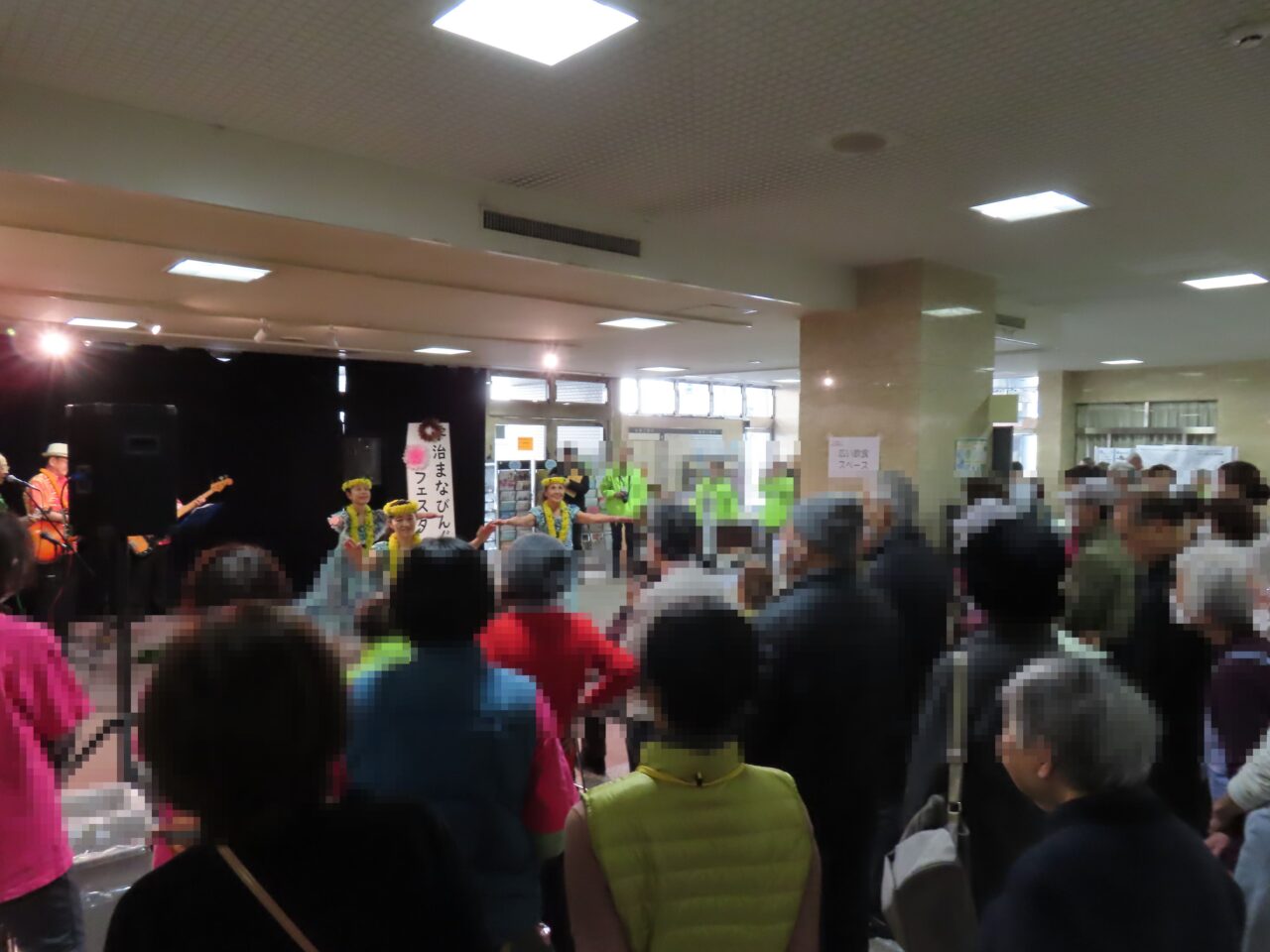 この日は22の団体が参加。オープニングでは、ロビーでフラダンスが披露され、やわらかな音楽とともに会場の空気がぱっと明るくなりました。