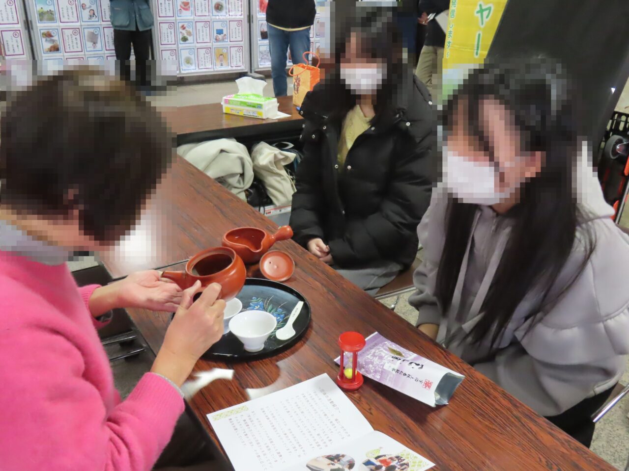 京都文教大学地域連携学生プロジェクト「宇治☆茶レンジャー」による「美味しいお茶の淹れ方体験」も実施。お茶のまちならではの企画です。