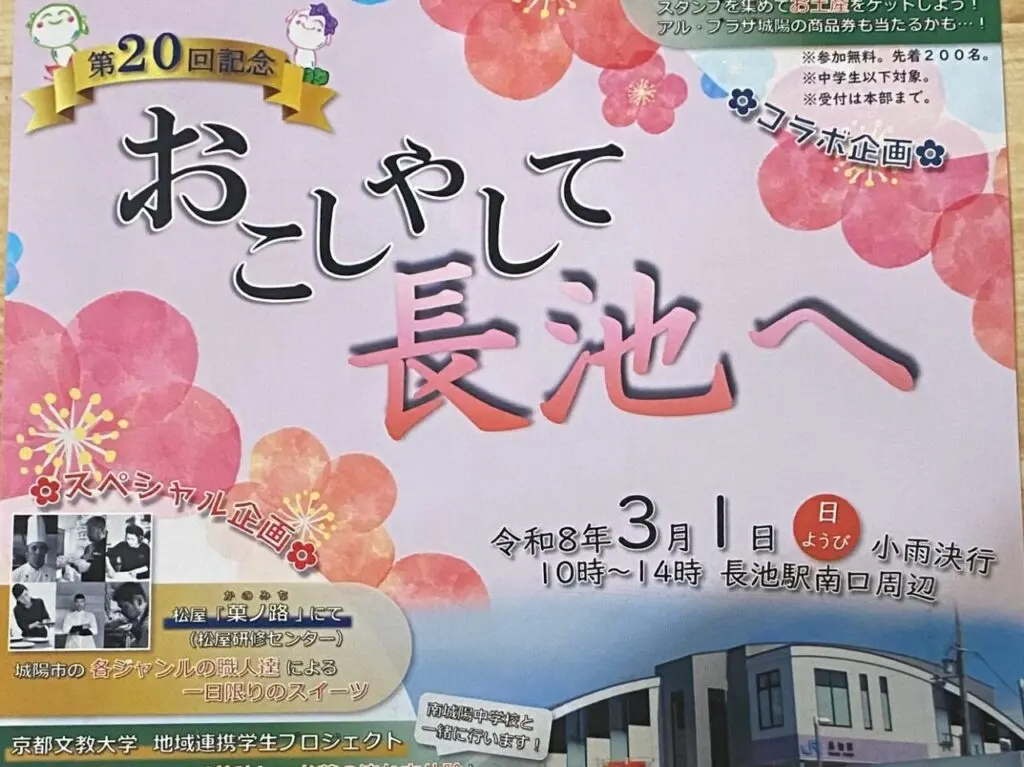 2026年3月1日(日)、「おこしやして長池へ」が開催されます。今回で第20回を迎える記念イベント。いつも以上に特別企画が盛りだくさんです。