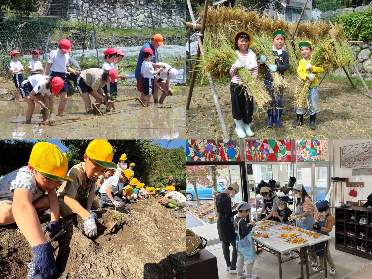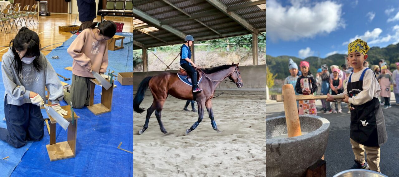子どもたちは、「米づくり」「畑作業」「干し柿づくり」「木工作業」「乗馬」「ゴルフ」など、さまざまなことを体験します。これらは、学校だけでなく地域の方々の協力があってこそだと、校長先生はおっしゃいます。