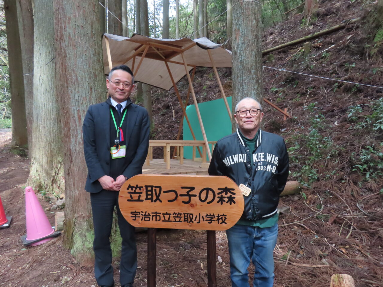 「未来の子どもたちのために…」そんな想いで、学校林を守ってこられた地元の方々も、大変喜ばれているそうです。学校林は「笠取っ子の森」として、これからもずっと子どもたちの成長を見守っていくことでしょう。