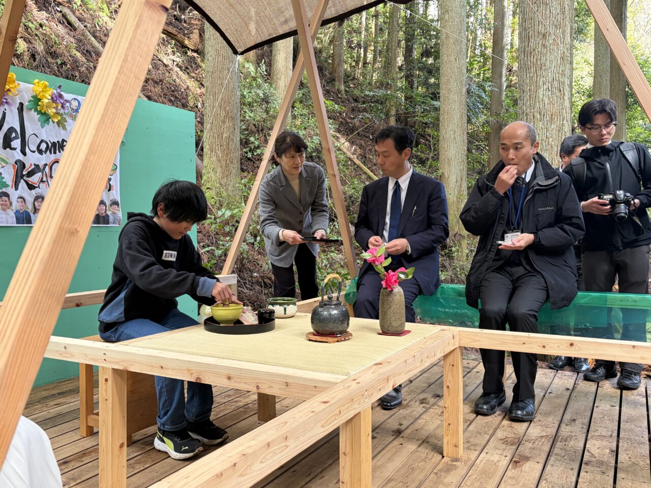 小学生たちが考えた「笠取っ子の森」という名前がつけられ、看板も子どもたちが手作り。披露式典では、子どもたちによるお抹茶も振る舞われました。