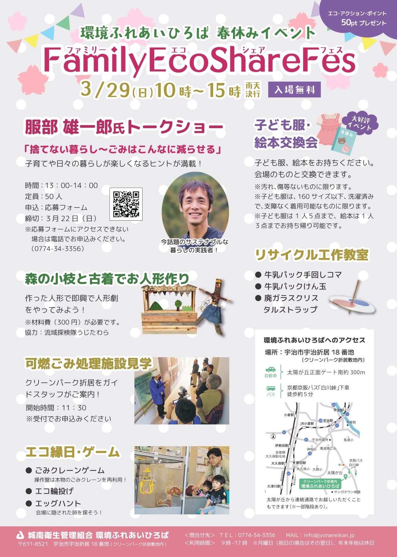 【宇治市】入場無料!工作やエッグハントも♪「ファミリーエコシェアフェス」が3月29日クリーンパーク折居で開催