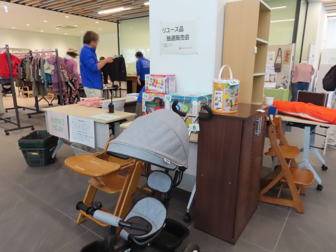 各家庭で使わなくなった子ども服や絵本を持ち寄り、会場のアイテムと交換できるコーナーもあります。
